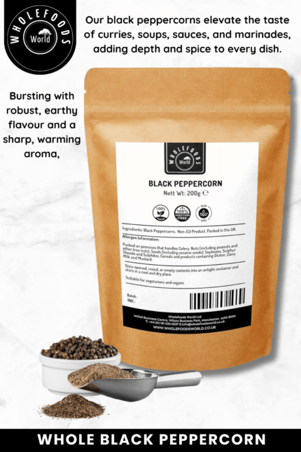 Enhance your cooking with the bold flavor and rich aroma of our premium whole black peppercorns. Sourced naturally and free from chemicals, these peppercorns are packed with antioxidants and known for their digestive benefits. A kitchen essential, they bring fresh, zesty spice to everyday meals when freshly ground.