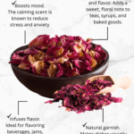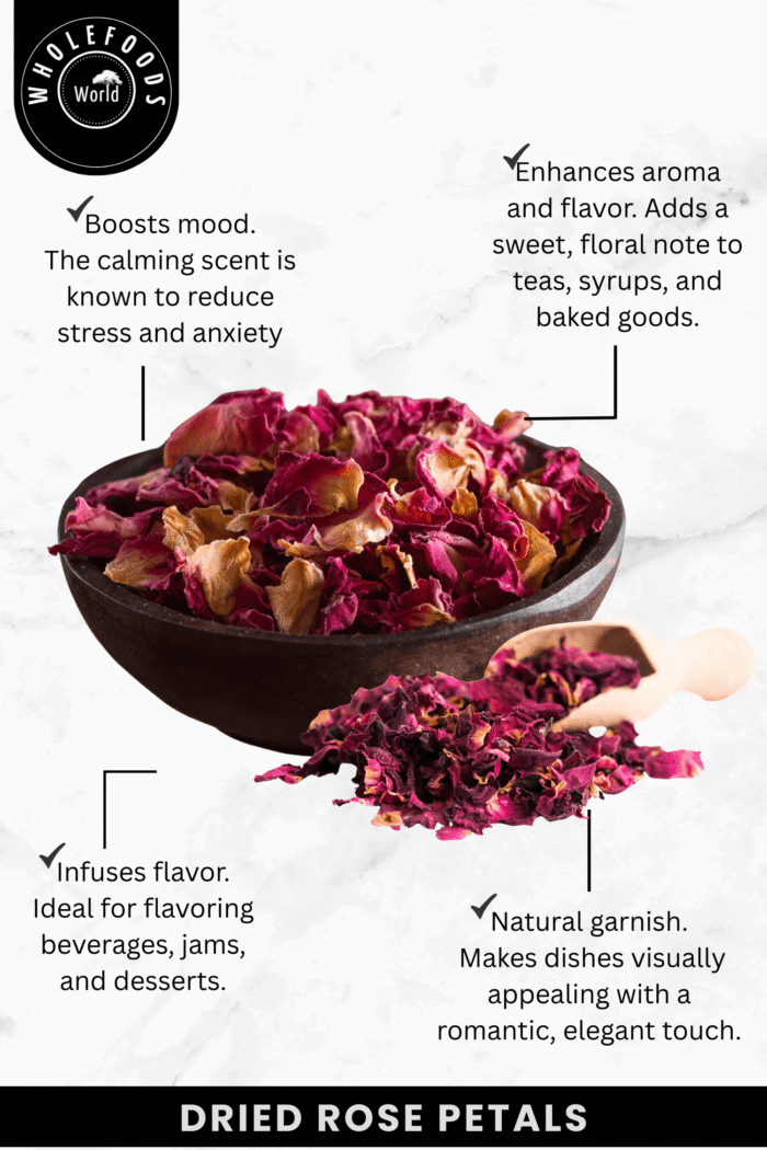 Suggested Use : Sprinkle dried rose petals over desserts, steep in tea, or use as a garnish for drinks and meals.