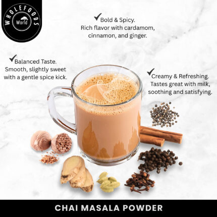 Experience the soul-soothing flavor of traditional Indian masala chai with our Premium Chai Masala – a handcrafted blend of aromatic spices that transforms ordinary tea into a rich, comforting experience. Made with the finest natural ingredients, this spice mix adds depth, warmth, and a spicy kick to your everyday tea. Perfect for chilly mornings, rainy afternoons, or cozy evenings, our chai masala not only enhances taste but also offers digestive, anti-inflammatory, and immune-boosting benefits. Whether you’re a tea lover or simply want a natural energy lift, our chai masala is your daily wellness ritual in a cup.