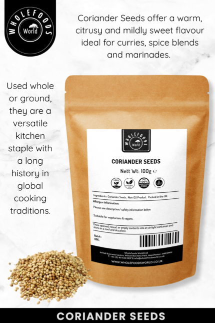 Historically, Coriander Seeds are among the oldest known spices, with records of their use dating back thousands of years to Ancient Egypt, Greece and Rome. Traded widely along spice routes, they became an essential ingredient across continents. Today, Coriander Seeds remain a staple in traditional and modern kitchens, valued for their versatility, natural character and ability to enhance a wide variety of recipes.