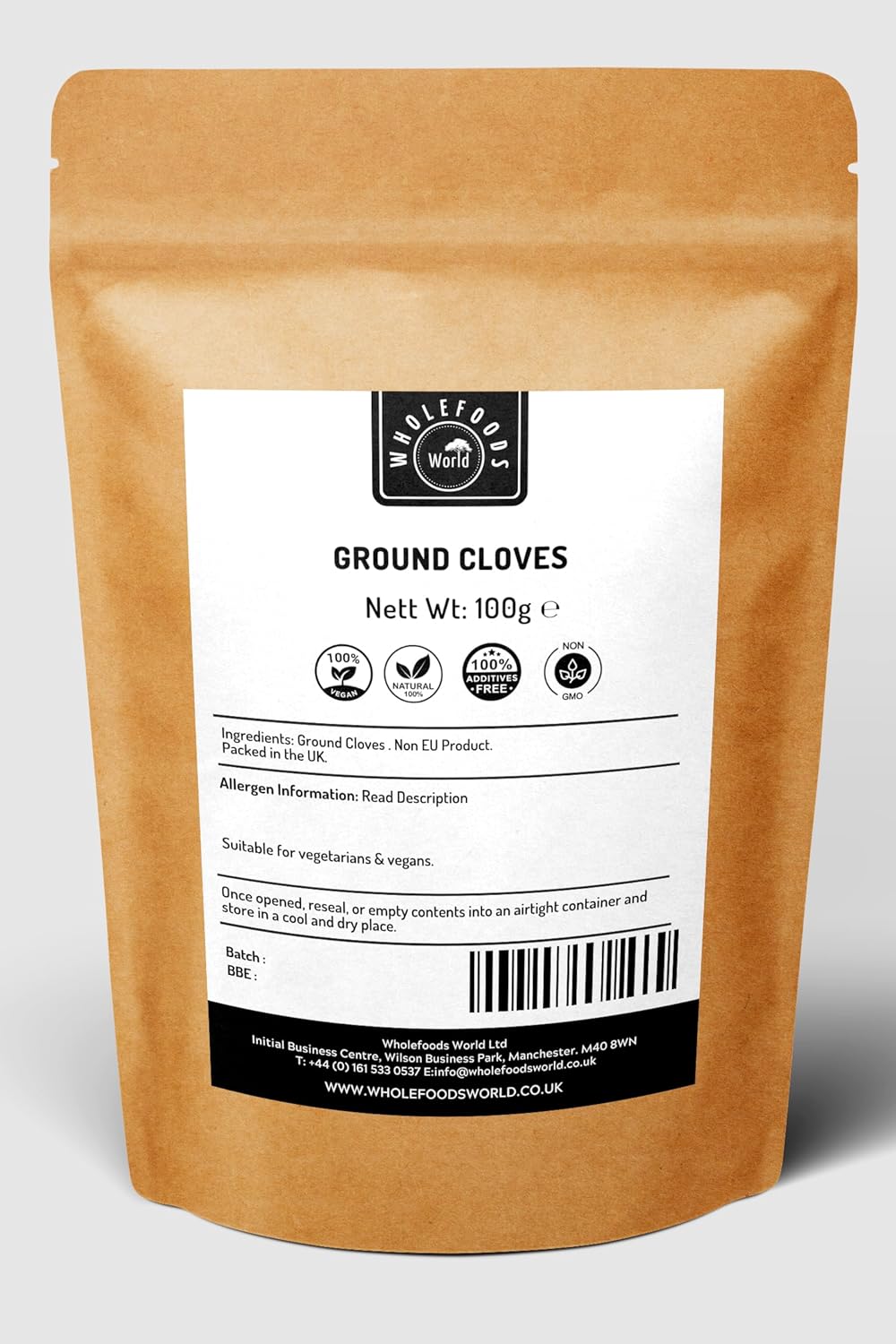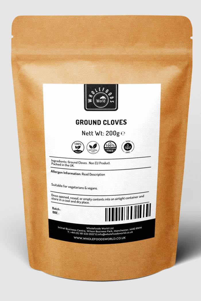 Elevate your culinary creations with the warm, bold flavour of Natural Ground Cloves – a richly aromatic spice known for its intense depth and versatility. Carefully ground from whole clove buds, our clove powder is bursting with flavour, ideal for both sweet and savoury dishes. This fine, reddish-brown powder adds a distinctive warmth to festive baking, curries, stews, spice rubs, and mulled drinks. It’s a key ingredient in spice blends like garam masala and pumpkin spice, and it pairs beautifully with cinnamon, nutmeg, and cardamom. Whether you’re seasoning meat, flavouring sauces, or adding to desserts, our ground cloves offer the convenience of a ready-to-use, flavour-packed spice. Bring warmth, fragrance, and flavour to your recipes with our premium Ground Cloves – an essential pantry staple for inspired and eco-conscious cooking. To preserve its natural oils and aroma, our ground cloves are packed in a resealable Kraft Paper Pouch – a thoughtful, environmentally friendly packaging solution. The pouch not only keeps your spice fresh for longer but also reduces plastic waste in the kitchen. Our clove powder is non-GMO, natural, and contains no colouring, preservatives, or additives. It is also suitable for vegetarians and vegans, making it a clean-label choice for home cooks and professional chefs alike.
