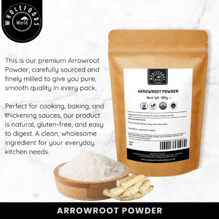 Discover the purity and versatility of our Premium Natural Arrowroot Powder, a finely milled, non-GMO starch ideal for everyday cooking and baking. Known for its smooth, neutral flavour and excellent thickening properties, arrowroot is a staple ingredient in both home kitchens and professional settings.