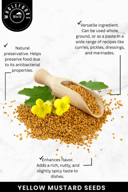 Suggestion To Use : Toast yellow mustard seeds in hot oil until they pop to release their nutty flavor, then add them to curries, pickles, or stir-fries for a mild, tangy spice.